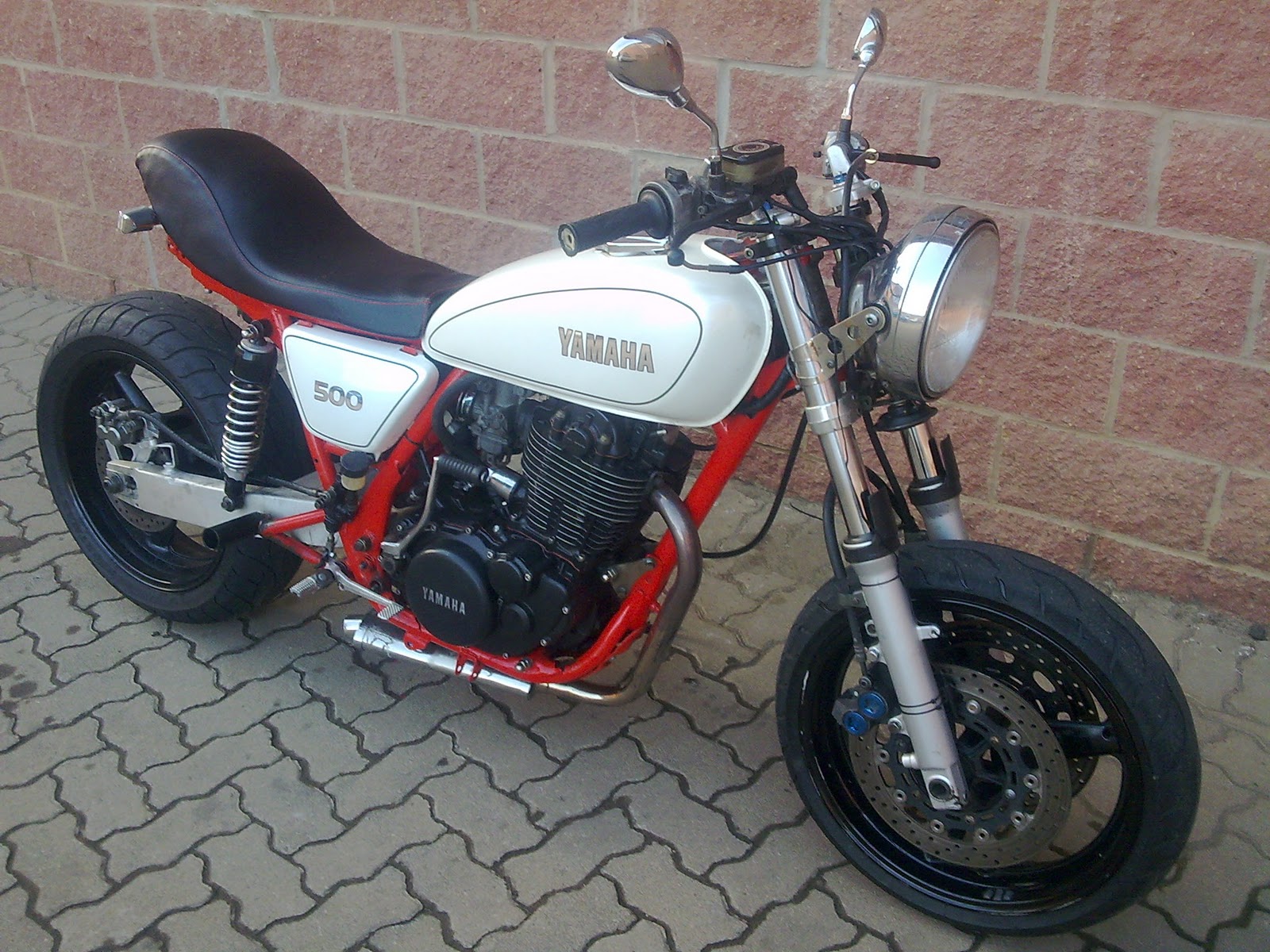 Gondolkodom a kis (zsír új, '83-as) Yamaha SR 250-esem átépítésén. A perverzióm a régi és az új technika vegyítése, ami nálam abban nyilvánulna meg, hogy régi, buta kerékméretű, gyenge fékű futómű kuka, bele egy modernebb, 17-es kerekekkel. (Totalbike cikkem a témában.) Na végre ezt találtam meg egy SR átépítés fotón. Azóta teljes izgalomban vagyok. Lehet a gyári SR-emnek annyi? (Amiről mellesleg még nem írtam!) Végre nem cafe racer fos!