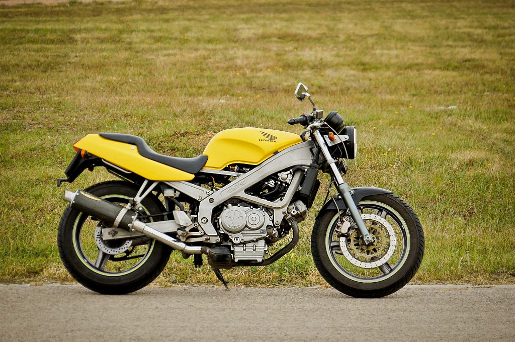A Spada semmiképpen sem haszonjármű: vicces, de komoly cucc. Az elődje a VT 250F, acélvázas konstrukció szegecselt kerekekkel, szintén jópofa motor, de az még a Honda azon korszakából származik, amikor nagyon mellényúltak a VF sorozattal, így nem tudom, szabad-e olyat venni. A Spada azonban már a CBR/VFR- érából származik: akkor alapozta meg a Honda a minőségi hírnevet.