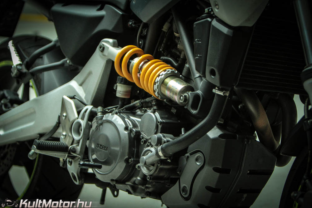 Menetteljesítményre nem sok, 48 lóerő, de elég. Autópályázni ezzel nyilván halál, mert bár egy egyhengeres tud magas fordulaton mókásan üvölteni, de ezek a rezgések nem olyanok autópályatempónál, mint az MT-01 rezgései. Sokkal inkább zabszem a seggben: zsibbasztó, irritáló rezgések ezek, nem élményforrás.